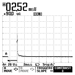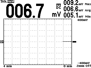 Since this has the enclosed coil, I need to look at each plug wire individually, most of them were in this range and are somewhat low (8-12KV is average at idle) at 6.6KV average and a low of 5.1 (all the plugs were fuel fouled).