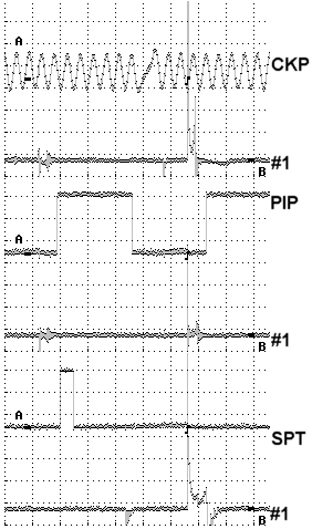 Crank position sensor, (first trace) is used by Ignition module to generate PIP, (third trace) which is used by PCM to generate SPOUT, (second trace) which is sent back to ignition module to fire coils. Ignition module is a microprocessor controlled module that decides which coils to fire and when based on signals from CKP and SPOUT.