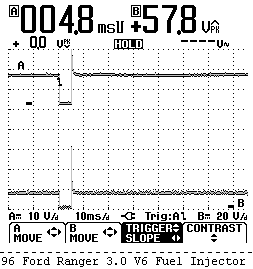 Here is a basic injector signal, scope gives on time, and peak volts.