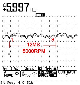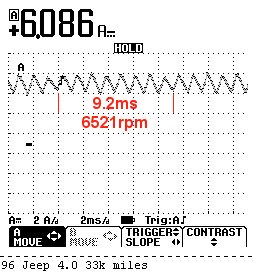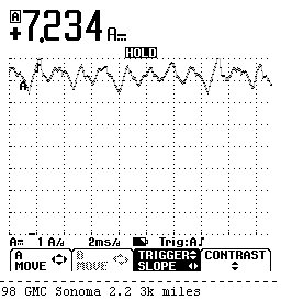 Here's a strange one, 98 GMC Sonoma 2.2 4cyl with only 3k miles. looks like just over 13ms at 7.5amps, regulator at rest.