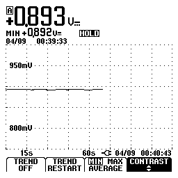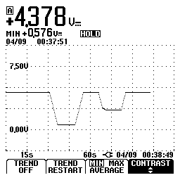 The First image shows the voltage change from the position sensor as different modes are selected on the control head. The plot shows the response from the actuator as it moves the door to different positions. From this we know the motor is operating, and the motor is moving the position sensor gear. As long as Air is moving from different outlets, all is well. The next image shows the temp door actuator, and as different temps are selected, there is no voltage change. The problem with this was no temp change when moved from cold to hot selection, and now we know why, there is no voltage change on the plot indicating any movement of the position sensor. Next we check output voltage to the actuator from the control head (was good) then check for open motor circuit (was open).