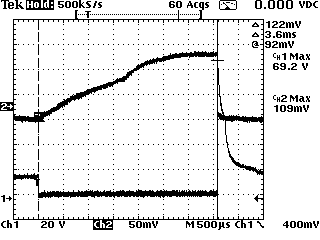 Opening up the timebase to 500us allows this event to be seen more clearly here.