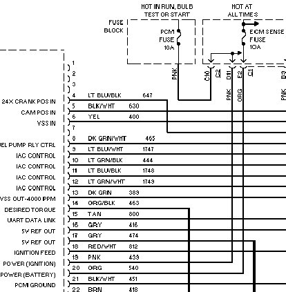 I suppose at this point its easy to throw a relay in and see if thats the case, but thats the easy way out, and not everybody has relays at their disposal (unless you keep some popular ones in your toolbox). Simple thing to do now is check for pump power at the relay socket and relay power to the relay. Some get a ground signal from the PCM to activate, others get a power signal to activate. In this case the relay gets power from the PCM. Power circuit to the pump was available at the relay, and the pump ran with the circuit bridged. Now I look to see if the relay is getting signal from the PCM, and find no signal exists. So, is it a bad ground, or no positive signal from PCM? I voltage drop the circuit, and there's nothing, no positive signal from the PCM. So, where to go from here? The PCM sends the prime signal after it see's key on, so the PCM is at fault right? Maybe. Maybe the circuit to the relay is open? Maybe.