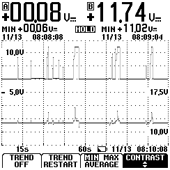 I think one of a labscope's best feature's is allowing voltage signals to be recorded over a period of time. Power and ground circuits can be watched by the scope looking for any change on either one, or even both at the same time. Let's say you have one of the infamous digital instrument cluster's that winks on and off. Maybe the cluster is losing the ground... or maybe its losing power... It may not be easy to hookup to one and plot the signal's to see if they go away, but this would be one way of finding out. Then you would be sure its the cluster that needs repair. How about multiple onboard computer's that need to communicate with each other over serial data lines? Or again, digital instrument clusters that receive that same serial data. If you can tap into these lines, you can check them to see if they are sending this data and plot them to see if they are consistent. Below are some sample images.