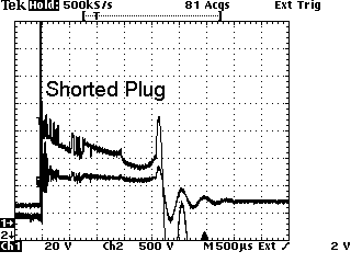 Open plug wire, worn out, wide gaps, bad plug, place high demand on the coil, shorten burn time, increase burn KV, high initial spike.