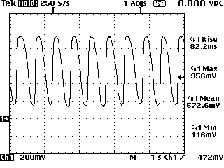 The rise time (from lean to rich) is good, less than 100ms, and has good peak to peak range (above 800mv and below 150mv). The above sample was taken from a 92 Toyota EFI 4cyl Pickup with about 40k on the clock, engine at operating temp, above 2000 rpm. Not all sensor signals will look as clean as this example, they seem to vary based on application, and type of fuel induction.