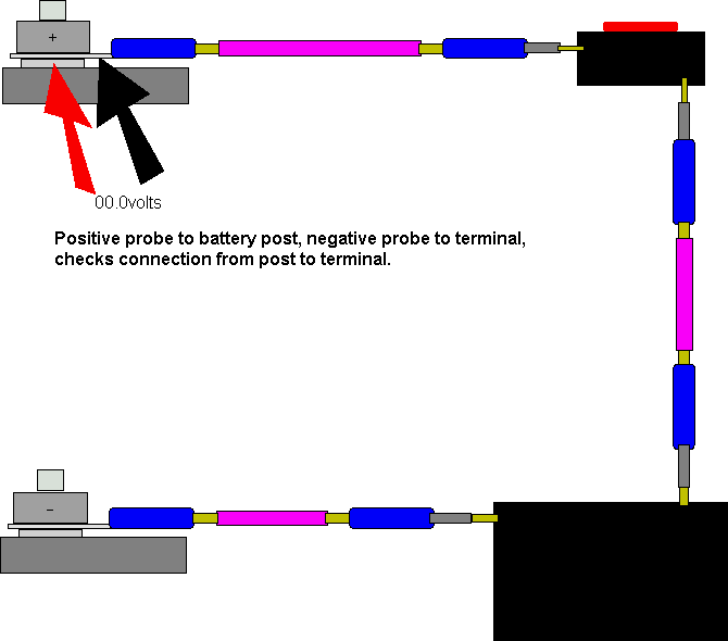 Probably whats most confusing about Voltage drop testing, is the term itself. Isn't voltage supposed to drop across a circuit? Yes, you are actually measuring that amount, and if all votage is not dropped, you see that amount as a result of resistance at that point. Does that make sense? It really is hard to get a grip on. I think of it as voltage lost testing, since thats actually what you see, voltage lost across a resistance. Just remember, its the lost voltage you see, not whats used, on the meter.